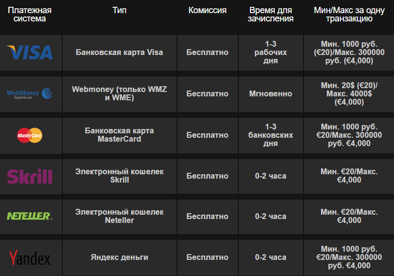 - Сроки выводов. Здесь указывается время обработки заявок, которое отличается для разных платежных методов и варьируется от нескольких секунд до нескольких рабочих дней. Например, электронные кошельки позволяют получать выигрыши в течение нескольких часов, а вот банковские переводы могут занимать намного больше времени.