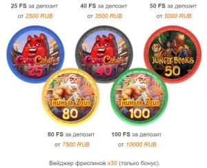 За каждый депозит, внесенный с пятницы по воскресенье, вы получите 30%-ный бонус размером до 60000 рублей или соответствующей суммы в валюте, которую вы предпочитаете.