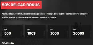 Игрокам, ранее совершавшим депозиты в ТТР Казино доступен еженедельный релоад бонус 50% до €100 / $100 / 10,000₽ / ฿0.015.