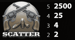Символ представлен в виде пистолета. Активирует бонусные вращения и имеет свою стоимость.