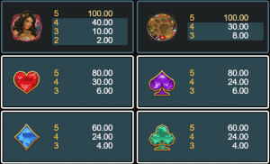 Игровой автомат оснащен классическими 5 барабанами и 243 линиями. Ставка колеблется в диапазоне от 0.15 до 30. Выигрышные комбинации формируются из одинаковых символов, стоящих на соседних барабанах.