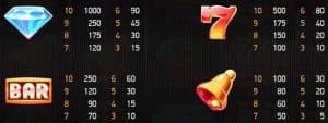Про символы особо нечего сказать — это старые добрые фрукты с семерками. Символ Wild имеет вид золотой звезды, а Scatter — логотип слота. Некоторые из символов представлены ниже.