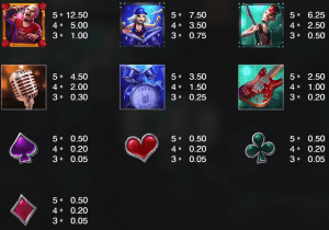 Символы представлены в виде рокерской атрибутики, музыкальных инструментов и базовых символов!